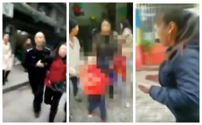 Video sa lica mesta pokazuje besne posmatrače koji udaraju i šutiraju ženu nakon što je savladana. I dalje nepoznat broj dece prevezen je u bolicu nakon incidenta, a napadač je u pritvoru.