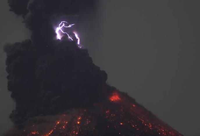U isto vreme mogle su se videti i munje nad vulkanom koji divlja.