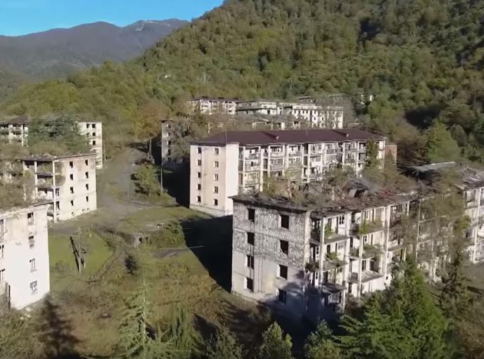Poluraspadnute cigle, vinova loza koja puže po zidovima i drveće koje raste na krovovima kuća - sve se to može videti u napuštenom sovjetskom gradu u planinama Abhazije.