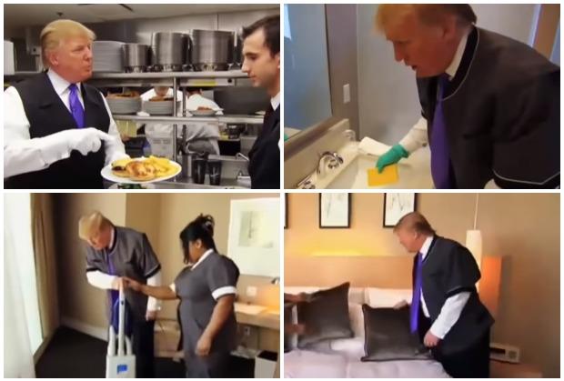 Sadašnji predsednik Amerike, Donald Tramp proveo je pred kamerama "Dan u cipelama svojih zaposlenih" u Tramp kuli, pa je tako čistio, ribao, prao i kuvao.