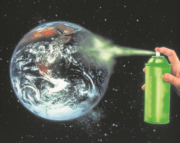 Ozonski omotač štiti Zemlju od ultraljubičastih zraka, koji izazivaju rak kože, uništavaju letinu i proizvode druge probleme. Povećanim korišćenjem hemikalija nazvanih hlorofluorokarbonati, koji oslobađaju hlorin i bromin, počelo je uništavanje ozonskog omotača.