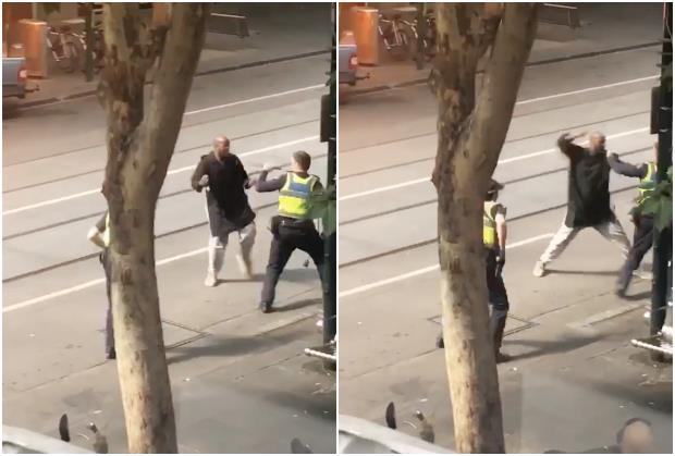 Policija je okarakterisala napad kao čin terorizma. Sve se odigralo u centru grada, a na snimcima se može kako pomahnitali muškarac, tamne puti i u islamskoj odeći, nasrće na policajce i prolaznike.