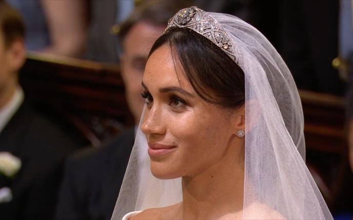 Megan je na kraju nosila tijaru kraljice Marije od Tecka, sa dijamantima i platinom. Odabrala ju je tokom susreta s kraljicom u Bakingemskoj palati.