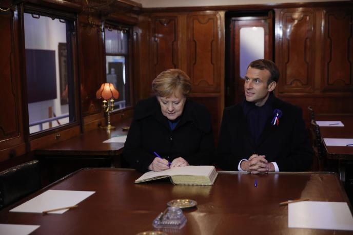 Predsednik Francuske Emanuel Makron i nemačka kancelarka Angela Merkel danas su održali komemoraciju u vagonu postavljenom severno od Pariza, na mestu gde su pre jednog veka poraženi Nemci.