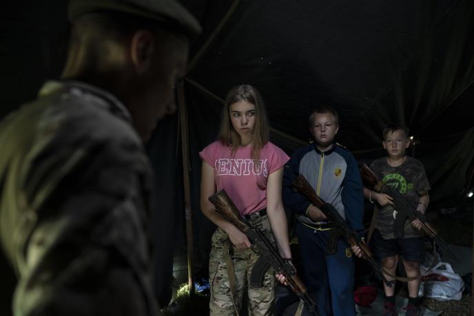 U vojnom logoru skrivenom u šumi na zapadu Ukrajine, a koji su posetili novinari Asošiejted presa, deca vežbaju s automatskim puškama.