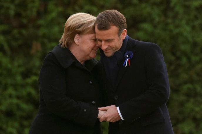 To se dogodilo kada su predsednik Emanuel Makron i Merkelova posetili šumu Kompjenja gde je 11. novembra 1918. godine potpisano primirje.