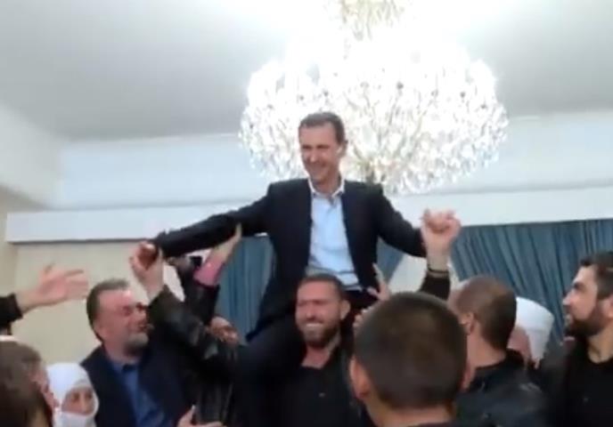 Na snimku koji je objavio Vatan vidi se kako nekoliko muškaraca podiže Asada, dok ga jedan od njih diže na ramena. U toj euforiji, Asad samo što ne udari glavom u luster.