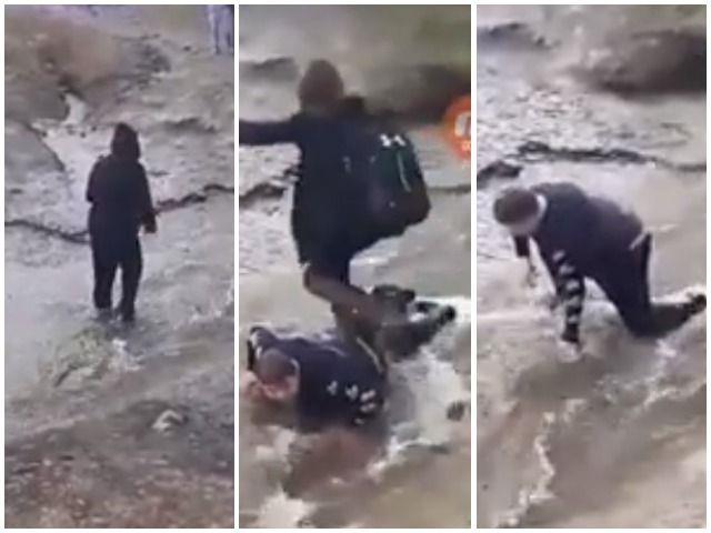 Na snimcima postavljenim na Fejsbuku vidi se kako 14-godišnji Bret Korbet leži na potoku kod Srednje škole “Glejs bej” u Novoj Škotskoj dok učenica gazi preko njegovih leđa kao preko mosta.