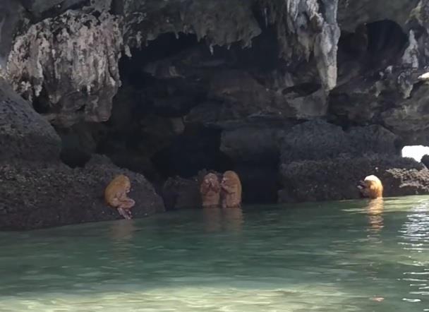 Turisti koji su uživali u bistrim vodama Tajlanda ostali su potpuno zatečeni kada su naišli na čudna stvorenja nalik Evoksima na ulazu u jednu pećinu.