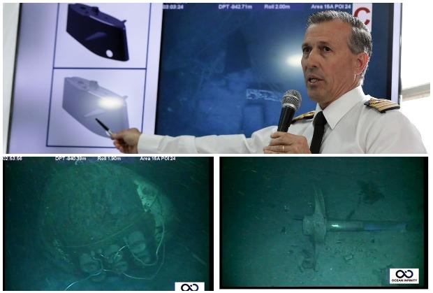 "Takođe su identifikovani i drugi manji delovi podmornice, koji odgovaraju pramcu i krmi", piše ispod fotografija.