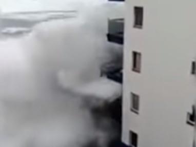 Na snimku se vidi kako visoki talas razara balkone na tri sprata zgrade koja se nalazi pored okeana, a iako izgleda zastrašujuće, u nevremenu niko nije nastradao.