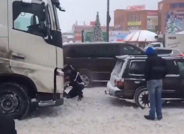 Takvo jedno neprijatno iznenađenje je snašlo i vozača kamiona u Rusiji, čiji točkovi nisu mogli da se izbore sa snegom koji se nalazio na putu.