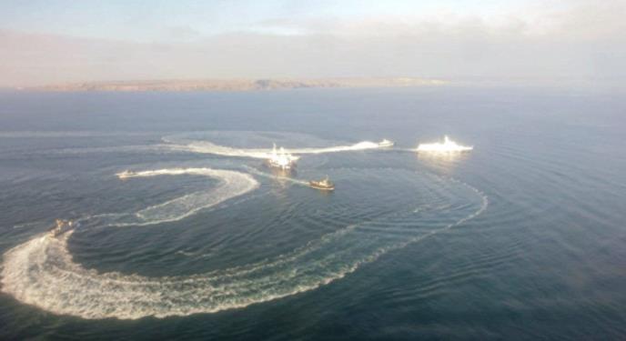 U saopštenju je navedeno da su brodovi ruske pogranične obalske straže pokušali da zaustave malu flotu naletanjem na tegljač i naneli mu manju štetu i da je taj incident pokazao da se Rusija ponaša agresivno i nezakonito.
