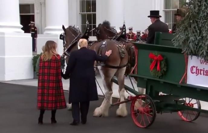 Naime, on i prva dama Melanija Tramp su snimljeni kako pozdravljaju kočijaše koji su im dovezali jelku koju će okititi za Božić.