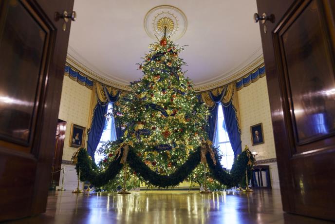 Bela kuća navodi da su među dekoracijama: drvo koje su sekli članovi porodica američkih vojnika poginulih u borbi, police nad kaminom s prikazima panorame Njujorka, Sent Luisa, Čikaga i San Franciska, prenosi AP.