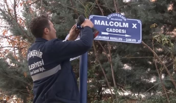 Novi ulični znak sa nazivom "Malcolm X Caddesi" (ulica) postavljen je duž ulice u blizini mesta buduće ambasade u oblasti Čankaja.