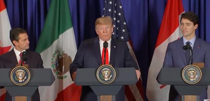 Trudo je uputio poziva za ukidanje carina kada se pridružio Trampu i meksičkom predsedniku Enrikeu Penji Nijetu na potpisivanju sporazuma SAD-Meksiko-Kanada koji je naslednik Severnoameričkog sporazuma o slobodnoj trgovini (NAFTA).