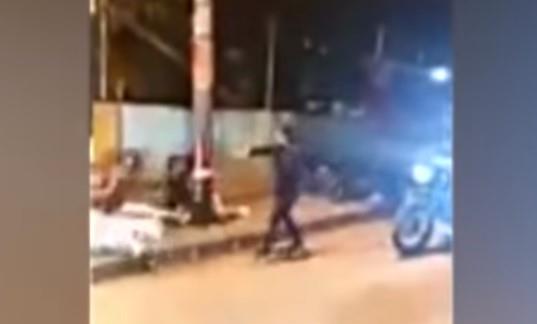 Na snimku se vidi kako žena dolazi motorom do muškaraca prilazi im i počinje da puca u njih.