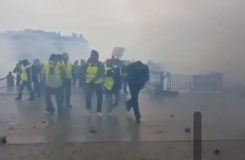 Objavljen je i snimak na kojem se vidi kako grupa demonstranata u žutim prslucima hvata jednog od policajaca, tuku ga i posle toga puštaju.