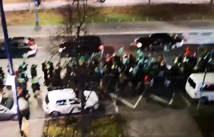 U videu koji je Nenad Milosavljević snimio sa svog prozora i okačio na Fejsbuk profil vidi se kako uz glasnu muziku i skandiranje na arapskom, velika kolona migranata maršira ulicom, uz pratnju policije.