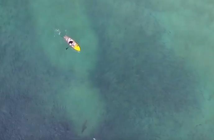 Prizor je snimio dron nedaleko od od plaže Nort Avoka u Australiji. Može se videti kako siva tigar ajkula pliva kroz jato riba.