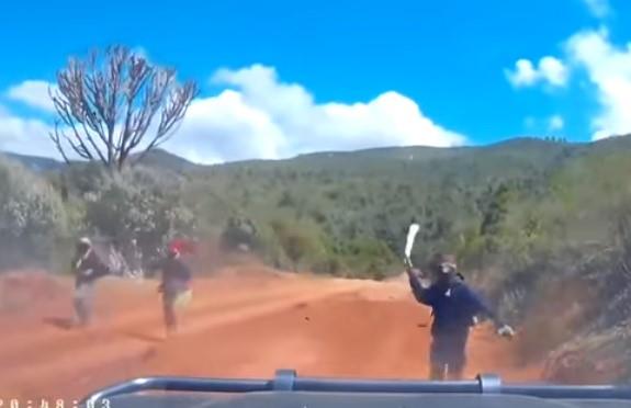 Incident se dogodio 30. novembra u gradu Kijabe (sat na kameri nije dobro podešen, op.a.), a na putu su naišli na beli kombi koji je stajao nasred puta. Kada su usporili iza njega su se pojavila trojicu maskiranih razbojnika sa mačetama.