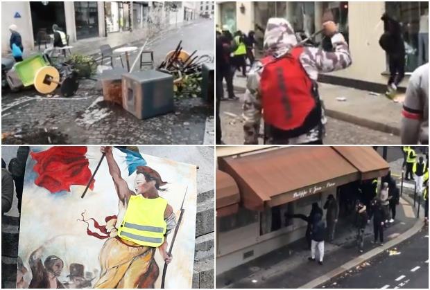 19.40 - Na društvenim mrežama osvanuli su brojni snimci u kojima Žuti prsluci palicama razbijaju izloge prodavnica.
