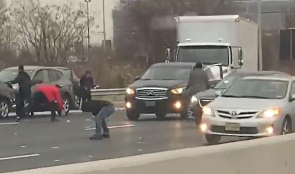 Na video snimcima objavljenim na društvenim mrežama vidi se blindirano vozilo Brinks na autoputu 15-ak kilometara od grada Njujorka i ljudi koji trče između vozila hvatajući novac po saobraćajnici.