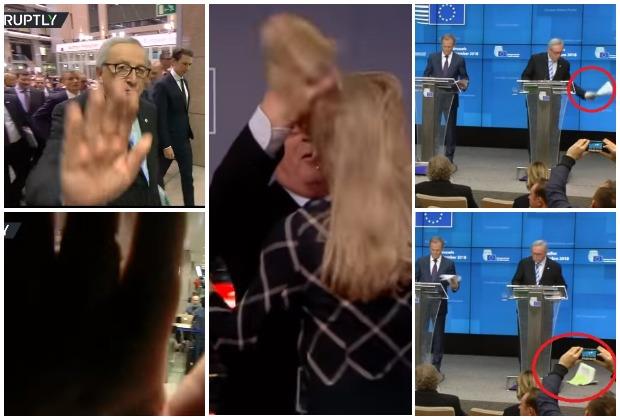 A onda je postalo luđe. Junker je namerno bacio fasciklu s dokumentima na pod bine na kojoj je stajao sa predsednikom Saveta Evrope Donaldom Tuskom i drugim zvaničnicima, što je Tusk samo propratio pogledom i napravio se nevešt.