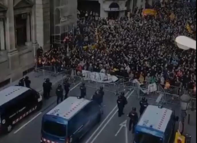 Demonstranti su nosili parole na kojima je pisalo "Sloboda" i "Mir". Protest je usledio nekoliko sati pošto su se neki separatisti sukobili sa specijalnom policijom u Barseloni, koji su protestovali zbog održavanja sednice španske vlade u katalonskoj prestonici.