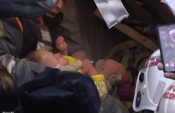 Objavljen je dramatičan snimak spasavanja bebe iz ruševina zgrade u Magnitogorsku, koja se srušila tokom novogodišnje noći.