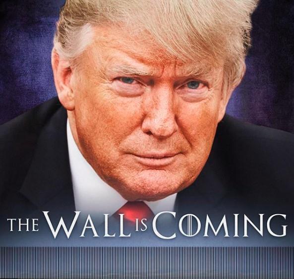 Tramp je juče na Instagramu podelio svoju fotografiju uz natpis "Zid dolazi", što aludira na popularni slogan "Zima dolazi" iz serije "Igra prestola".