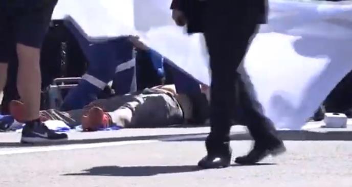 Policija je, na kraju, zaustavila napadača za volanom taksija i pokušala da ga onesposobi elektrošokom, ali je muškarac tada sam sebi zario nož u grudi i preminuo na licu mesta.