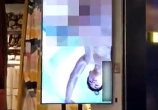 Kada se preko ogromnog TV ekrana u poznatoj prodavnici nameštaja pojavio goli muškarac usred scene sa seksom, kupci su bili potpuno šokirani.