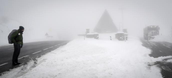 Nacionalna meteorološka služba izdala je upozorenje na oluju za oblast Sijera Nevade, navodeći da sneg i magla otežavaju vidljivost.