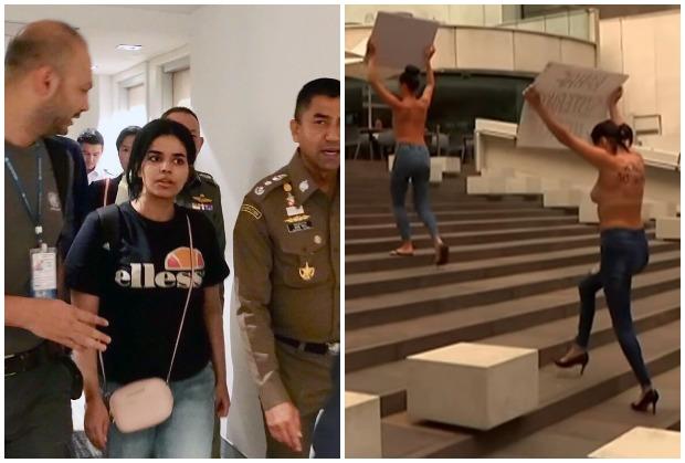 SIDNEJ - Četiri žene, koje sebe nazivaju Tajno sestristvo, protestovale su u Sidneju u toplesu u znak podrške Saudijki Rahaf Muhamed al Kunun (18) u trenutku dok Australija počinje da razmatra njen zahtev za prebavilašte u toj zemlji kao izbeglice.