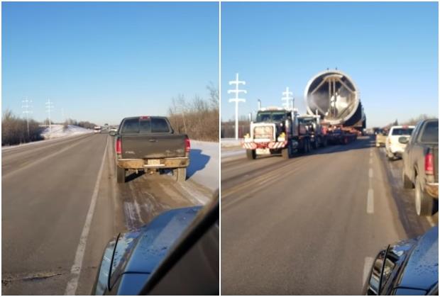 Vozače u Alberti začudio je neverovatan prizor na auto-putu kada su ugledali karavan kamiona koji vuku ogroman teret.