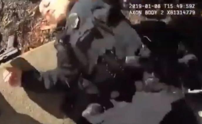Na snimku se vide policajci kako izalze iz stana pošto ih je napao pas vlasnika stana. Pas je navodno pobegao iz kaveza, napao policajca s leđa koji je zbog toga pucao i s leđa pogodio Batler u levo rame.
