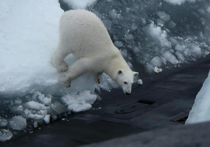 Gladni polarni medved stigao je do jedne od najsmrtonosnijih mašina na ovom svetu u potrazi za hranom - ruske podmornice koja nosi nuklearne projektile.