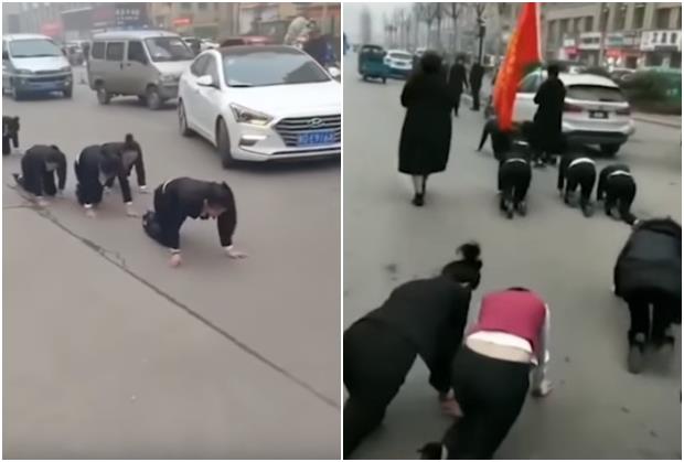 Radnici jedne kompanije za prodaju kozmetike naterani su da puze po ulici u Tengdžouu, u provinciji Šangdong, zato što nisu ispunili zadate ciljeve.