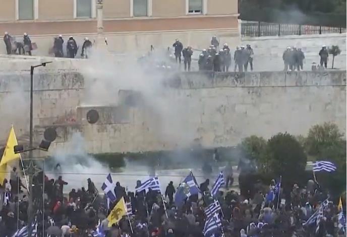 Pred grčkim parlamentom u Atini tokom protesta zbog Prespanskog sporazuma došlo je do incidenata kada je grupa maskiranih ljudi sa grčkim zastavama pokušala da probije policijski kordon.