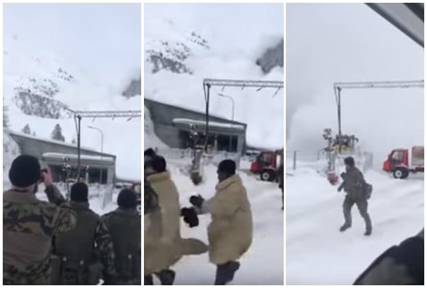 Urnebesan snimak švajcarskih vojnika koji najpre hrabro prkose snežnoj lavini, a potom beže glavom bez obzira postao je pravi hit na internetu.