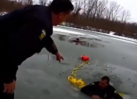 Odmah po dolasku na lice mesta, oni su pristupili spasavanju i tom prilikom je kroz led koji je bio opasno tanak propao i jedan od oficira.