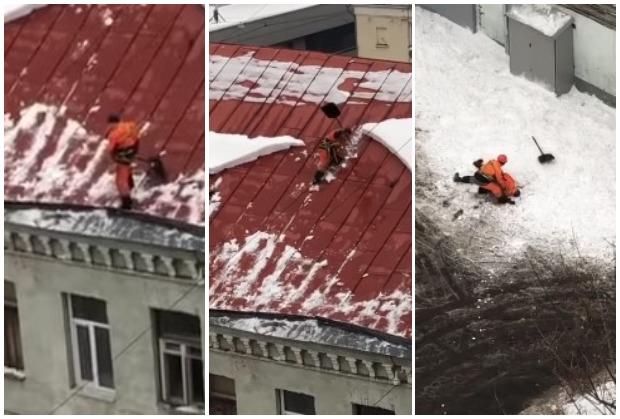 Na drušvenim mrežama pojavo se snimak radnika koji je čistio krov na zgradi u Moskvi kada se okliznuo i pao s krova.