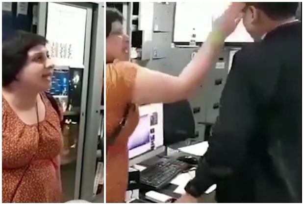 Ona je snimljena kako verbalno i fizički napada službenika nakon što je kažnjena zbog ilegalnog boravka u državi, pošto je prekoračila svoju boravišnu vizu za 160 dana.