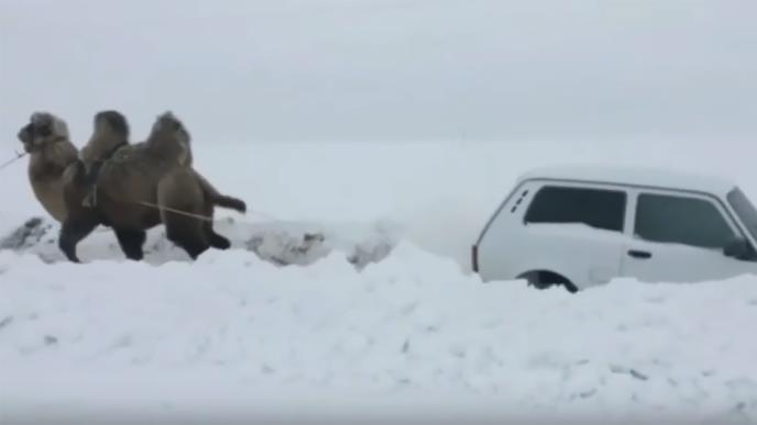 Ali čak i vlasnik kamile je bio iznenađen snagom životine koja je bez problema izvukla robusna kola.
