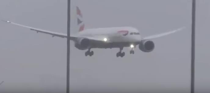 Avion Britiš ervejza tako se spustio na pistu, ali od nje se samo odbio. Uslovi su, vidi se na snimku, prilično teški.