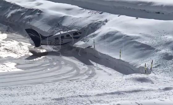 Posetioci francuskog ski-centra Kurševela imali su prilike da vide kako pilot malog aviona nije imao vremena da letelicu zaustavi na vreme, pa se zabio u sneg.
