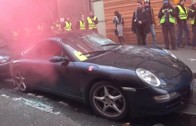 Takođe, nekoliko automobila je zapaljeno. Posebnu pažnju je privukao je zapaljeni "porše" iz koga je kuljao ružičasti dim.