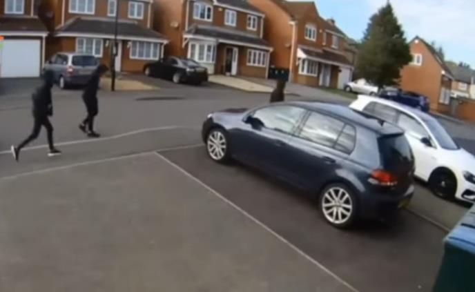 Na snimku nastalom u Koventriju, vidi se kako iz automobila izlaze pljačkaši i ulaze u jednu kuću.